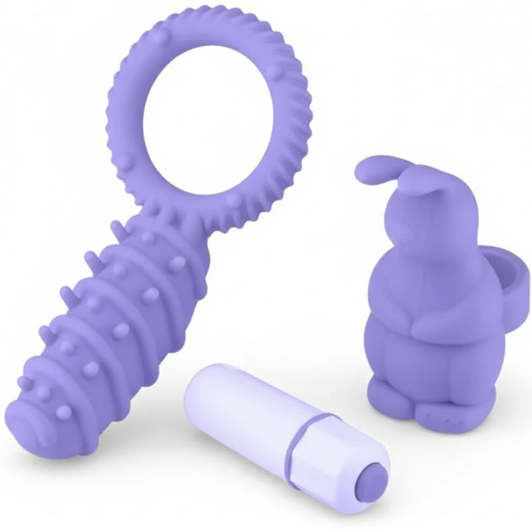 Eficiente e envolvente, este é o kit composto por uma dedeira ótima para complementar a relação sexual com sensações diferenciadas de prazer, pois contém detalhes próprios que conseguem atingir o máximo de prazer ao usuário, tudo com inovação que atrai ainda mais. Com a qualidade o kit vem também com um anel peniano em silicone muito macio, suave ao toque e seguro, repleto de detalhes que satisfazem o homem e a mulher. Além de retardar a ejaculação e prolongar a ereção, ele contém uma cápsula de 10 velocidades intensas que facilitam os orgasmos estimulando a parceira.