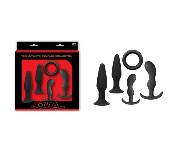 Kit Jovial 5 em silicone Black, 4 Plugs e um Anel – Sex shop