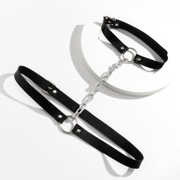 Lingerie Erótica Colar e cintura com Corrente Harness