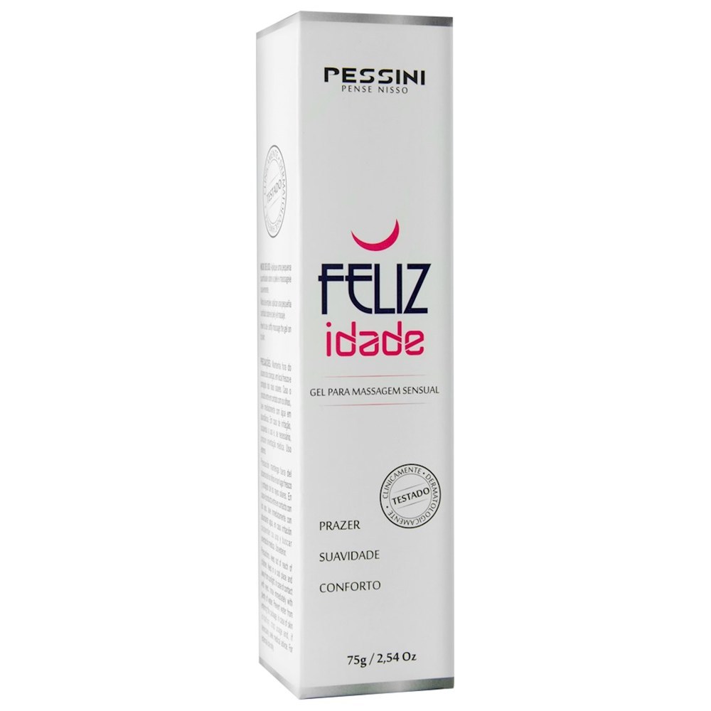 FELIZ IDADE Pessini lubrificante neutro de última geração, a base de água sem cheiro. Este lubrificante possui a mesma textura da lubrificação natural, proporciona ao casal uma relação de muito conforto.
