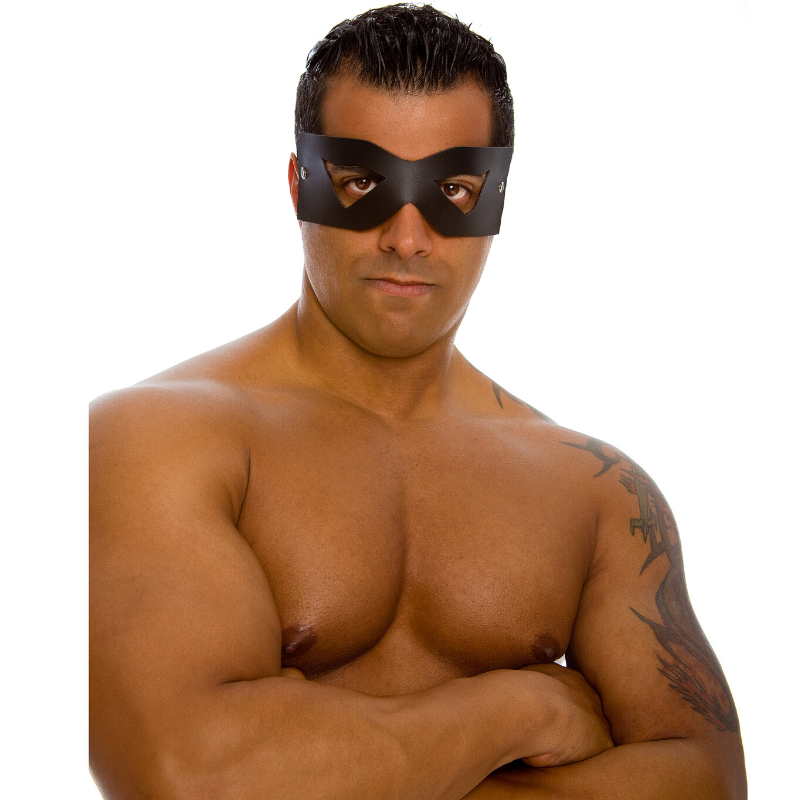 Item básico para muitos looks fetichistas, a máscara unissex em courvin enche o olhar de poder e muito mistério. Vista um personagem e solte a imaginação.