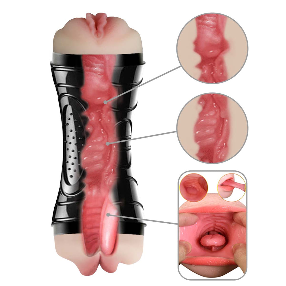 Masturbador Duplo Vagina e Boca – TRAINING MASTER.Os masturbadores são brinquedos sexuais masculinos que possuem uma textura interna projetada para simular a sensação de penetração.é produzido em TPE, livre de Ftalatos, e totalmente seguro.Possui duas extremidades penetráveis, sendo uma em formato de boca e outra em formato de ânus.Em um tubo de plástico semi rígido, sendo possível fazer vários movimentos, pois os nódulos internos e as estrias mantêm a retenção do lubrificante, auxiliando a penetração, tornando-a suave e sem desconforto.Sua textura interna é projetada para proporcionar a sensação de penetração que, aliada ao material super macio, trazem prazer extremo!Medidas:22×7,8 cm.