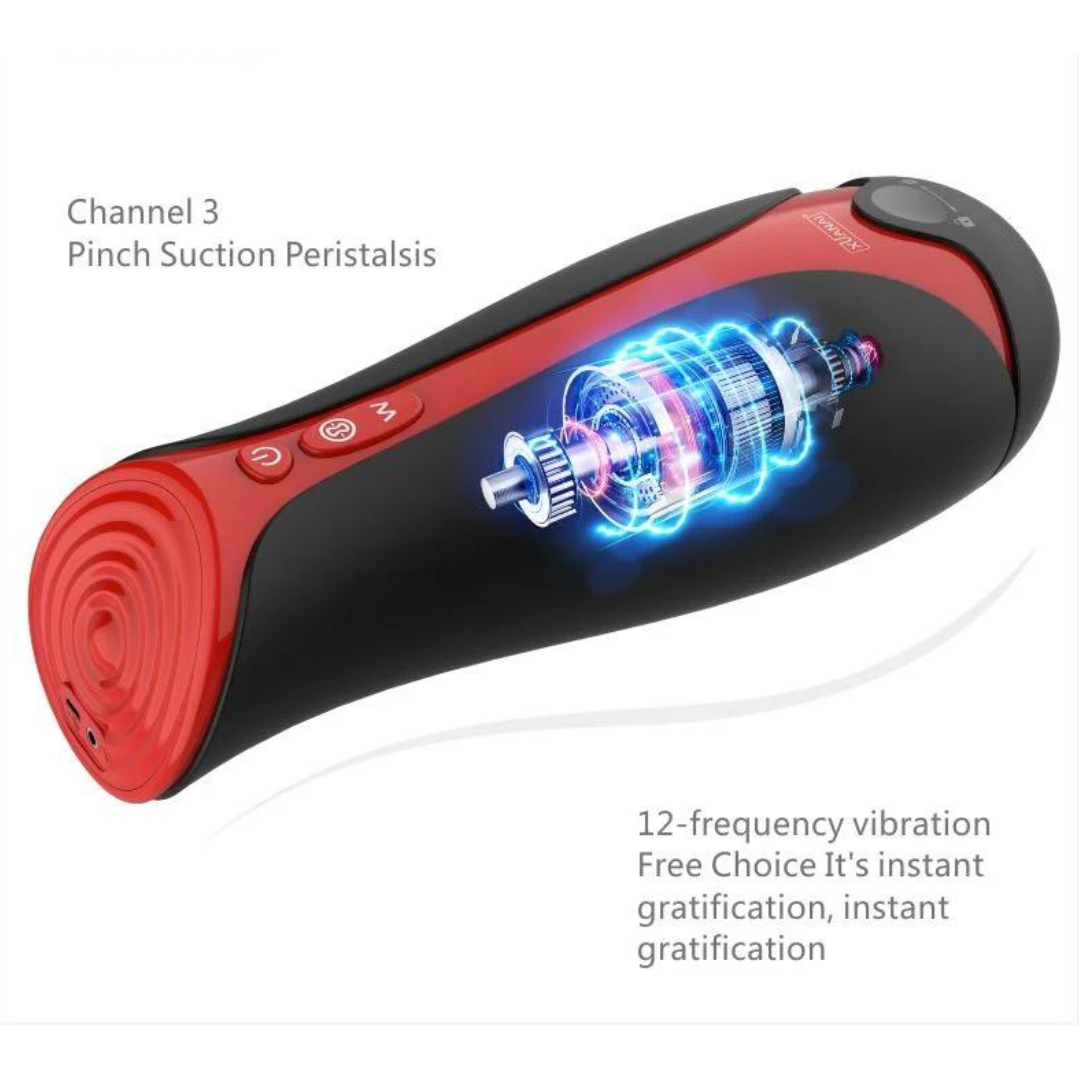 Ele possui 12 modos de vibração que se assemelham ao movimento das mãos e 3 de pressão que se assemelham ao movimentos de sucção e função fone de ouvido para deixar a brincadeira ainda mais realista,