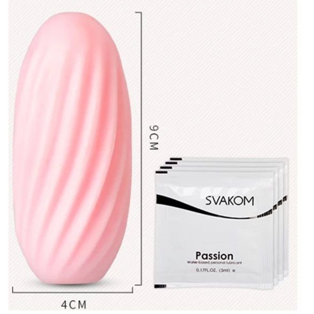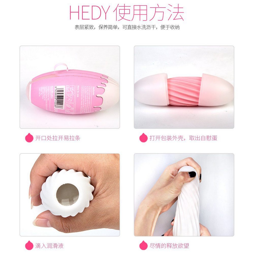 Modo de uso: Depois de descascado, o ovo recebe lubrificante no seu interior e é encaixado no pênis, como uma touca elástica, a peça pode ser esticada até a base do membro, e a partir daí a masturbação é feita com as mãos sobre ele. Perfeita para brincar sozinho ou a dois, já que a espessura garante sensação por dentro e por fora