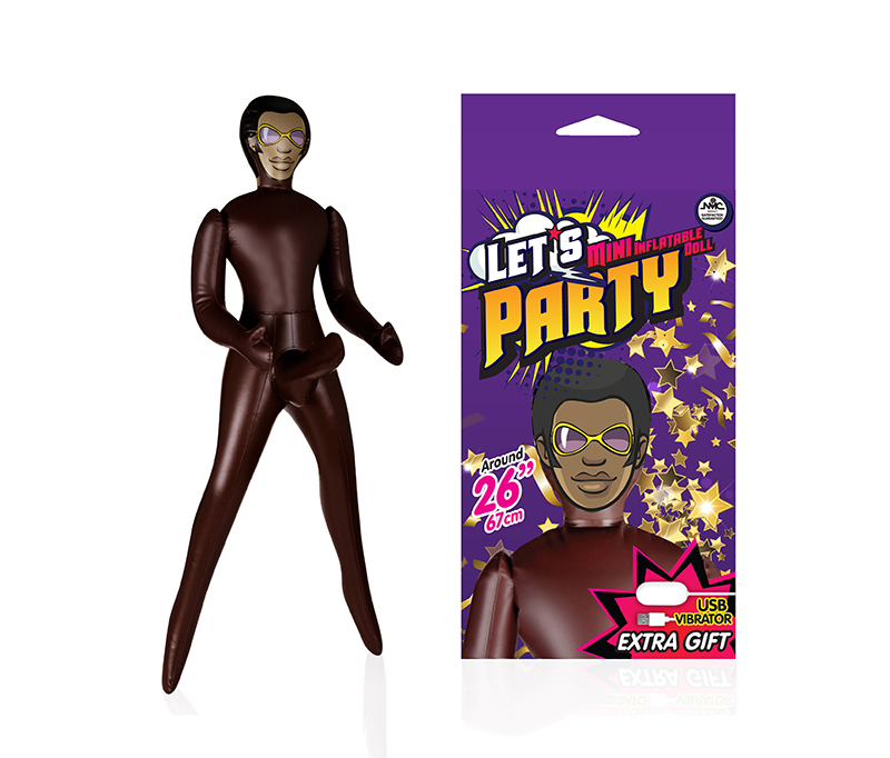 Magnífico mini boneco inflável estampado, com pênis inflavel para penetração.