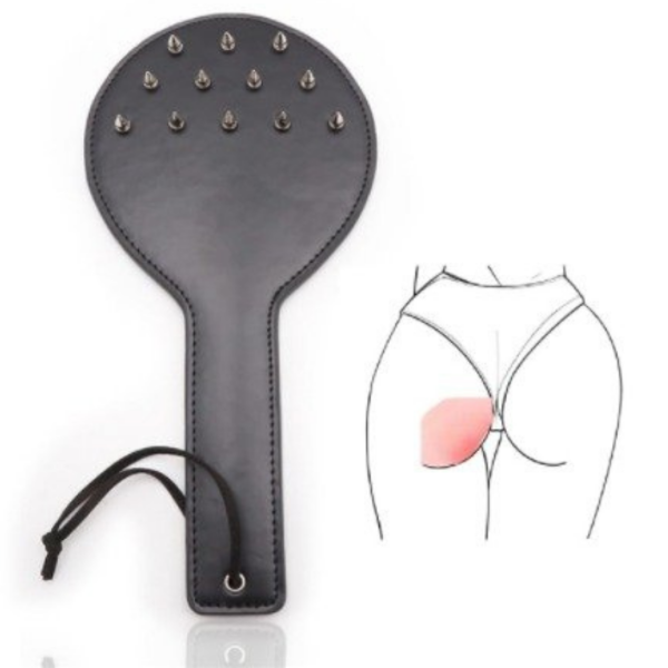 Chibata Palmatoria Em Couro Preto Erótico SPANK HARD Fetiche Com Pinos