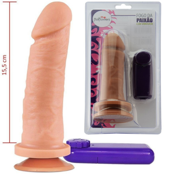 Pênis com vibrador e ventosa Fogo da Paixão 16×4,5cm Hot Flowers – Sexshop