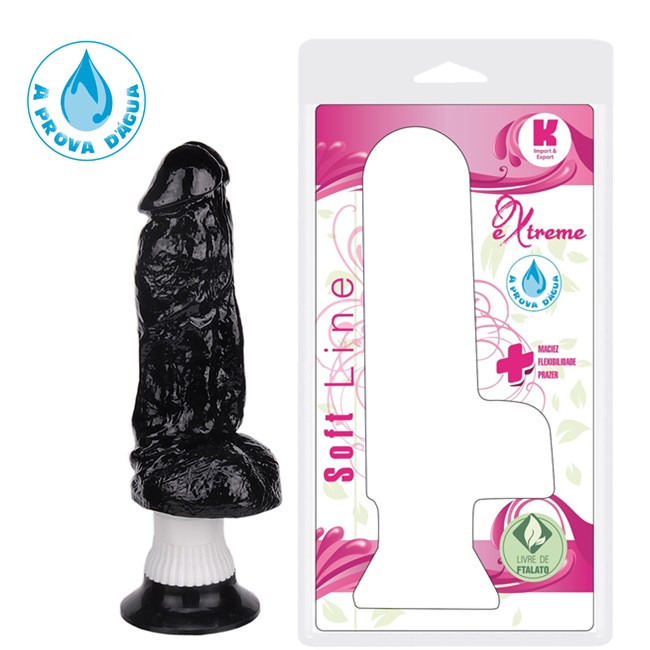 Pênis vibrador feito em polivinílico macio e flexível com veias salientes, totalmente realístico. Possui vibração de multi velocidade com botão giratório na base.