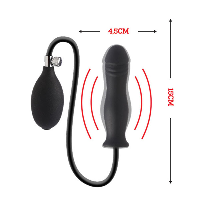 Modo de Usar: Aconselhamos o uso de um lubrificante. Em seguida, introduza delicadamente o plug com formato de pênis realístico e pressione a bomba para inflar, até atingir seu limite de tolerância. Para retirar o ar do pênis gire o botão da válvula de pressão em sentido anti-horário para esvaziar o dildo.