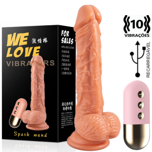 Pênis realistico com glande saltada, escroto e ventosa resistente.Possui 20 níveis de vibração que podem ser controlados através do controle remoto que acompanha o produto. Confeccionado em material macio, possui veias e texturas no corpo da protese, trazendo naturalidade e realismo.