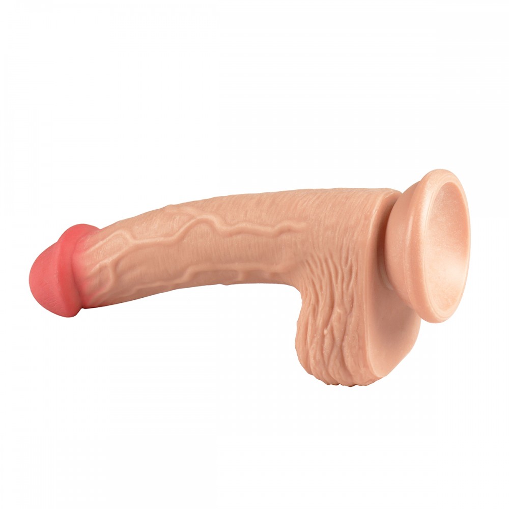 Pênis realístico em Silicone com Textura Super Macia. Peça com Testículo e Ventosa. Material. Produto atóxico de uso adulto usado como acessório.