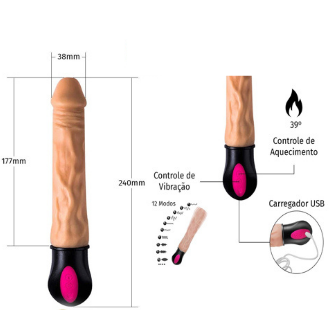 Prótese realística confeccionada em silicone macio e suave ao toque com glande definida, prepúcio, veias salientes e escroto. Possui 7 modos de vibração e com aquecimento. Perfeito para satisfazer seus desejos. Não deixe de experimentar!