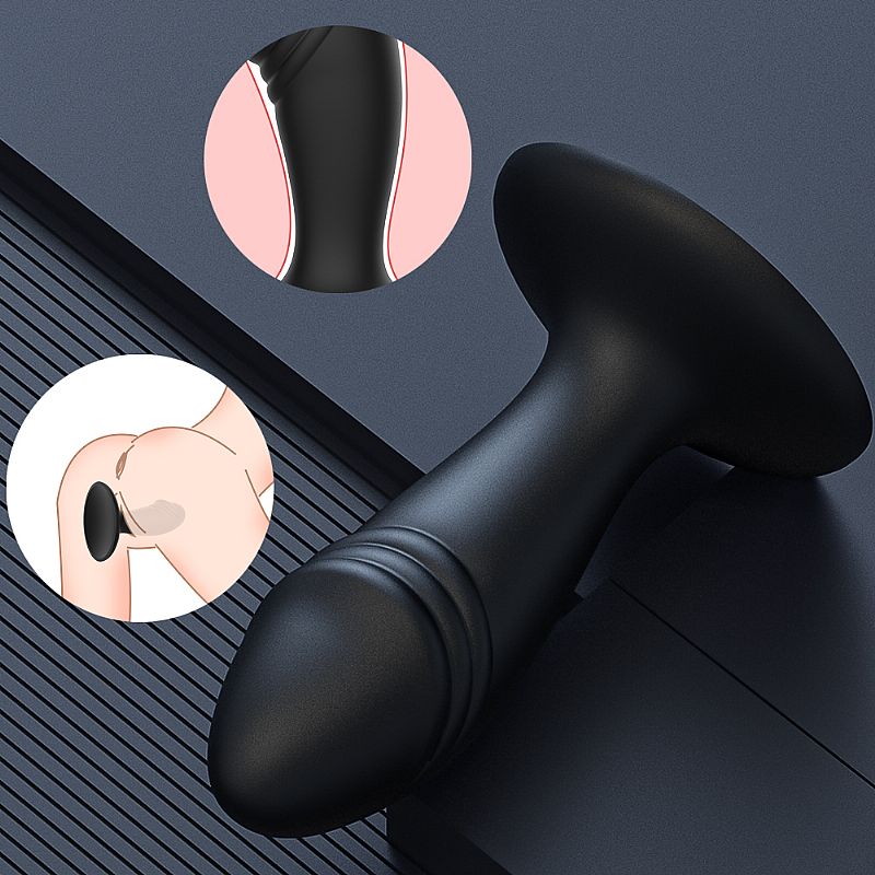 Plug anal feito de um material macio e consistente com base que facilita o manuseio.