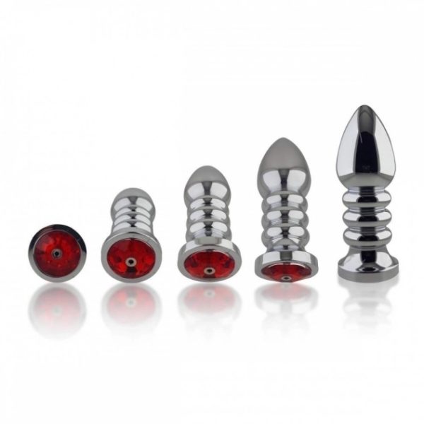 Plug Anal Em Aço Inoxidável Escalonado Com Vibrador e Joia Na Base