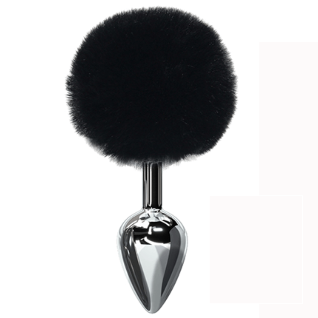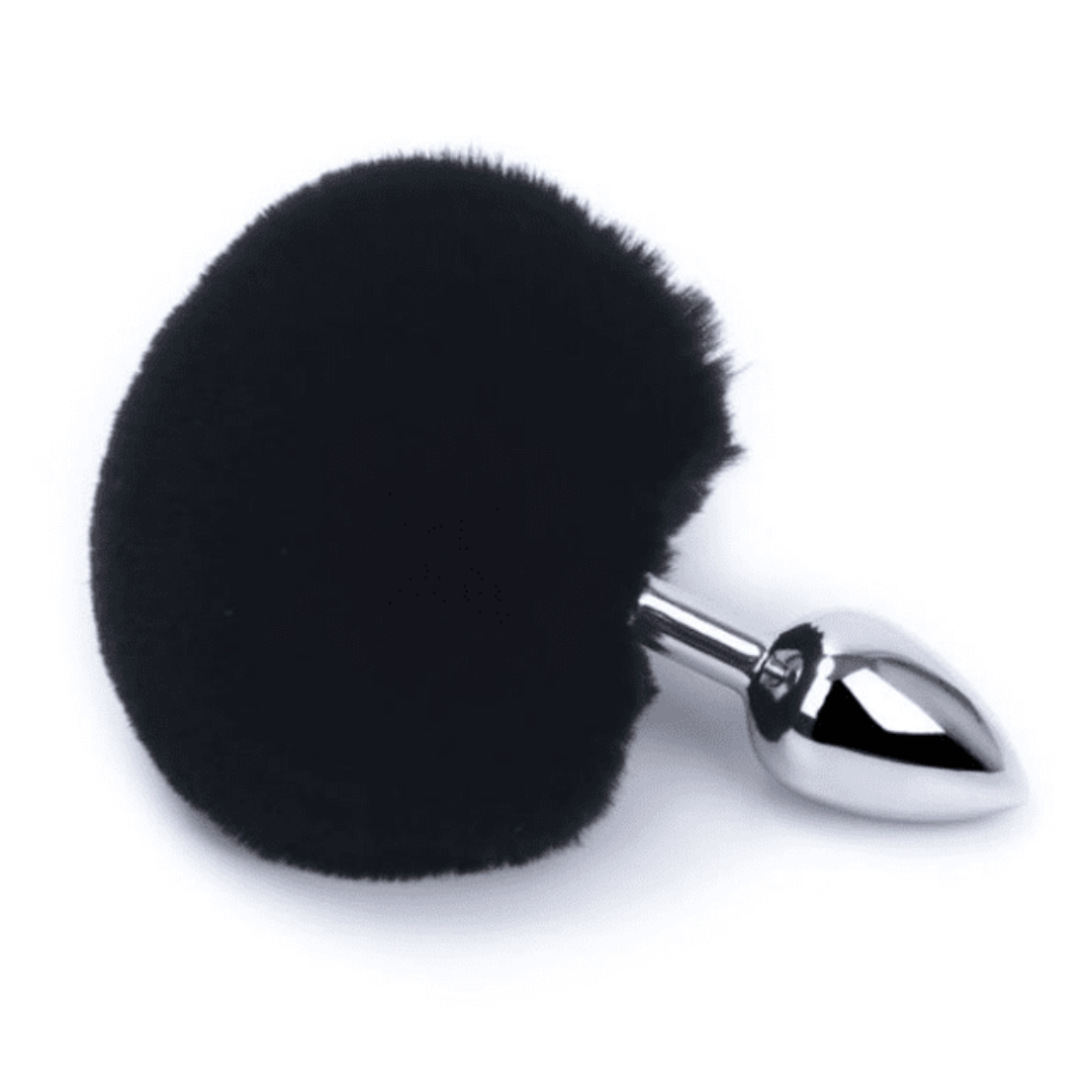 Plug Anal em Metal 7cm com Pompom Preto – Sex shop