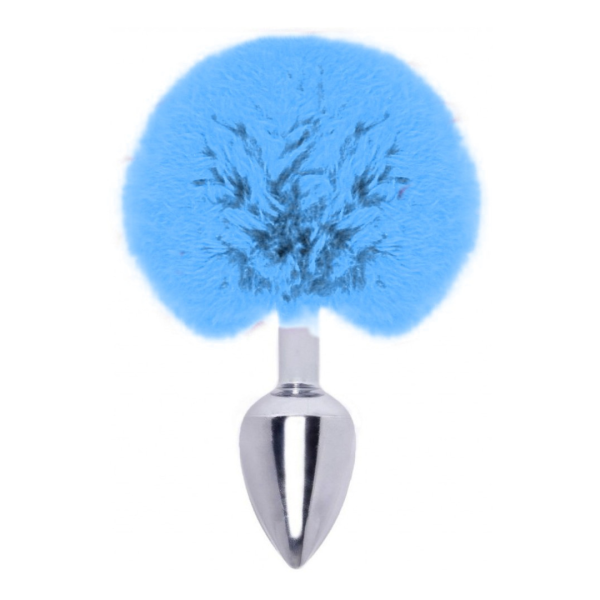 Plug Anal Em Metal Liso Com Pompom Coelho Azul 6×2,8 Cm