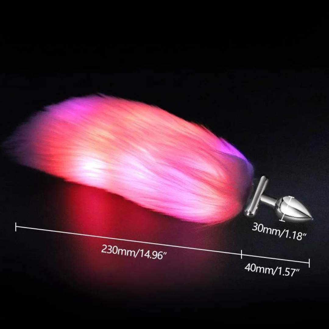 Plug Anal Metal Aço Cauda Curta Azul LED Com Cores 4×3 Cm