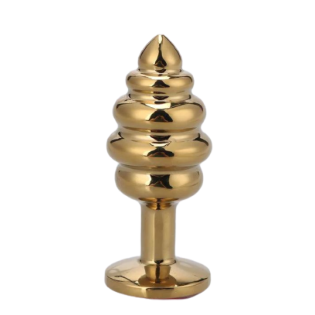 Plug Anal Metal Aço Dourado Com Pedra Colorida 9×4 Cm