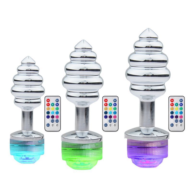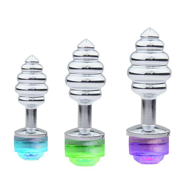 Plug Anal Ondulado Com Luz de Led Feito em Aço Inox 9 Cores