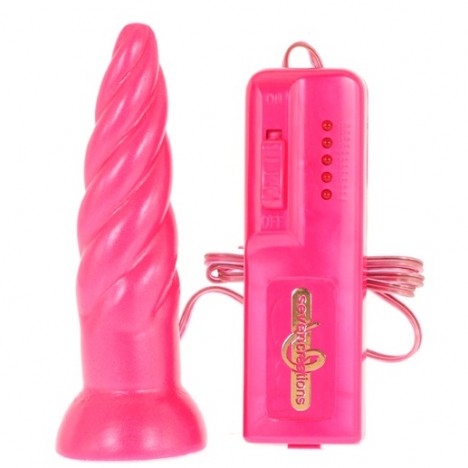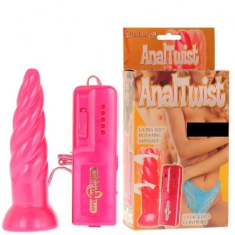 Plug anal rotativo feito em soft jelly com corpo torneado e com vibro e controle remoto com fio de 5 velocidades.