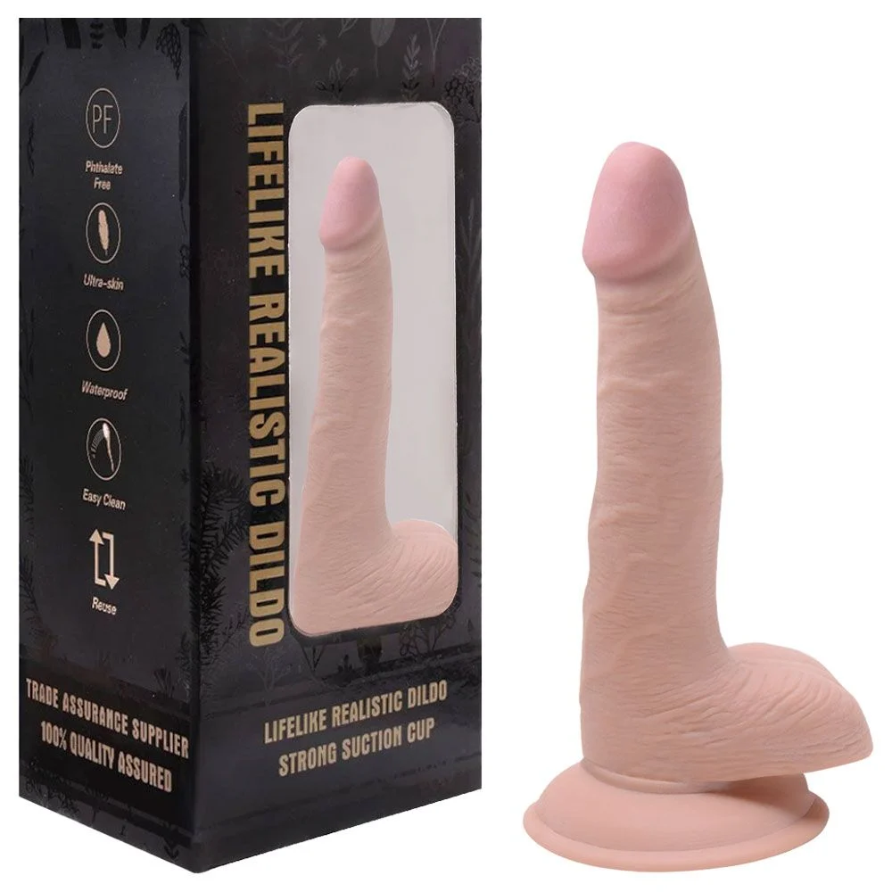 Prótese em forma realística de pênis. Produto macio ao toque ergonômico,o que facilita o manuseio e a estimulação, trazendo uma sensação prazerosa do uso. Possui ventosa na base.