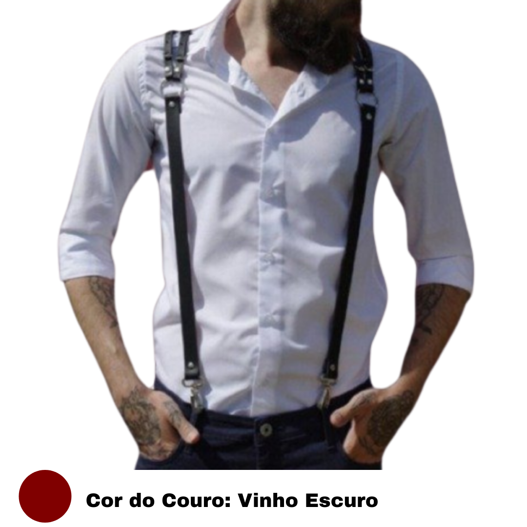 Suspensório Harness Em Couro Vinho Sexy Masculino Com Metais