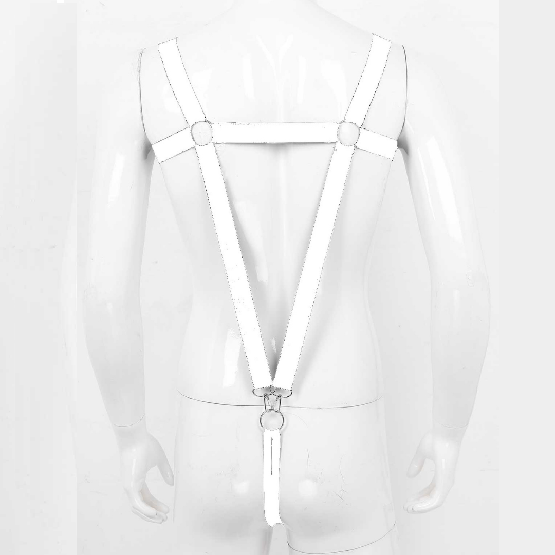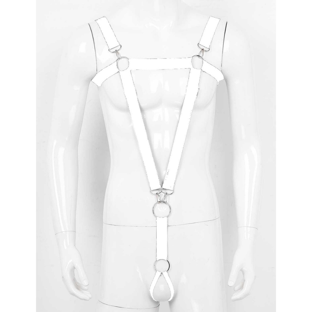 Suspensório Masculino Em Elástico Branco Com Anel Peniano 4,5 cm