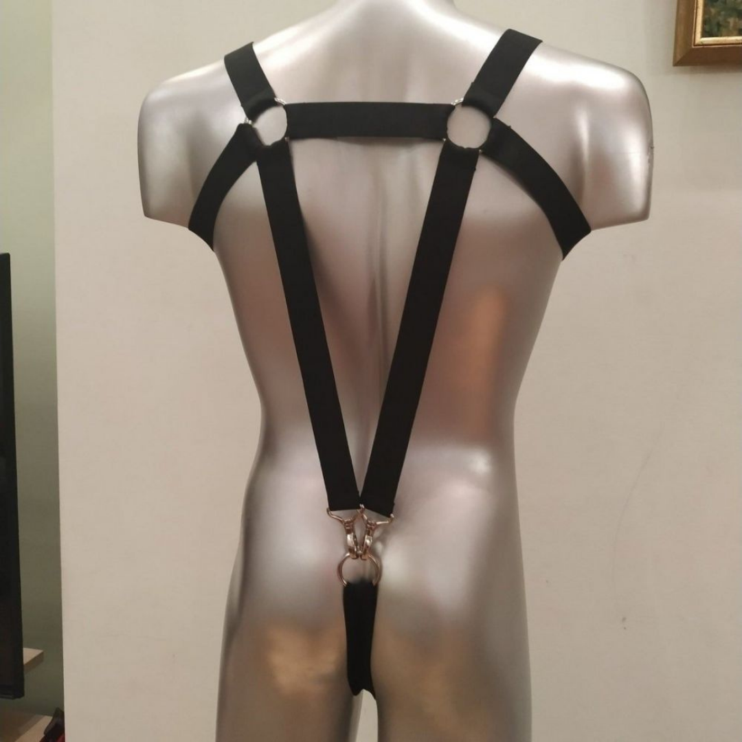 Suspensório Masculino Em Elástico Preto Com Anel Peniano