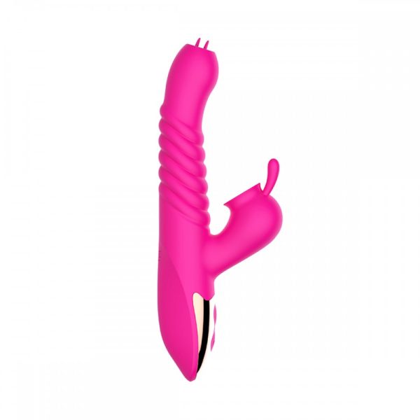 Vibrador com 7 modos de vibrações, estimulador clitoriano detalhes de orelhas com 7 modos de pulsações com serdas massageadoras, 7 intensidades de movimentos vai e vem com texturização no corpo do vibrador, 7 modos de intensidade na glande com movimentos de 2 línguas. Design elegante com detalhes que evidênciam seus botões de ajuste de vibrações, à prova d’água.