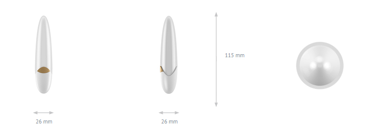 Dimensões: O vibrador mede 11,5 cm de comprimento por 2,5 cm de diâmetro (aproximadamente).