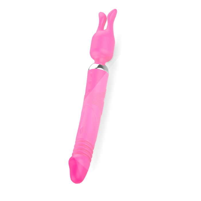 Vibrador vai e vem em formato glande e orelhas para estimulação de áreas erógenas.