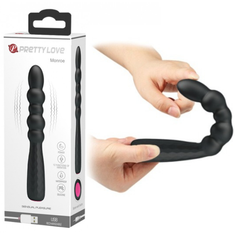 Massageador de Ponto G. Pretty Love Monroe. Recarregável. 12 modos de vibração. Cor: Preto. Resistente a água. Confeccionado em silicone macio e suave ao toque, possui alça de segurança além de ser resistente à água. Perfeito para estimular todas as áreas erógenas do corpo.