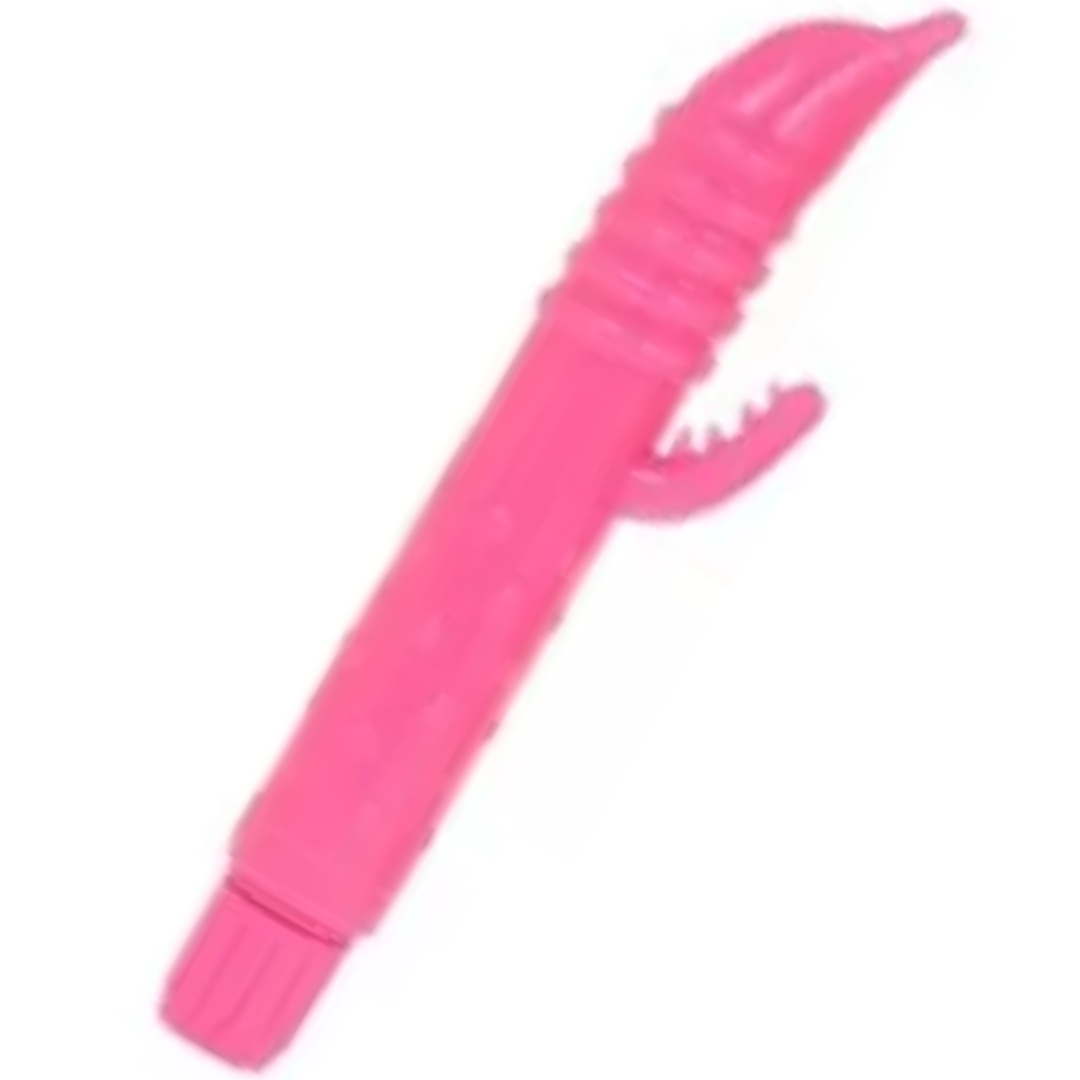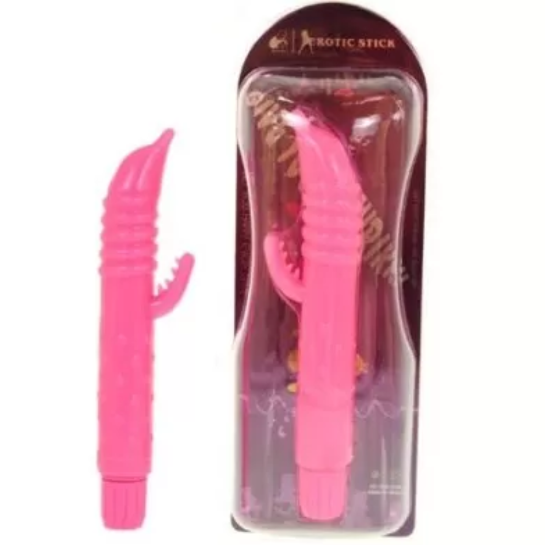 Vibrador Erotic Stick multi-velocidades, vibrador rígido com capa de silicone macia e ponta e estimulador flexíveis, sua ponta é fininha com formato de golfinho com anéis e estimulador com micro pontos, ideal para uma noite de prazer.