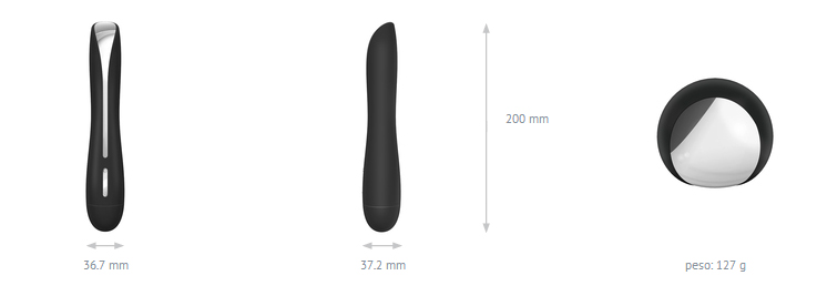 Embalagem: Se apresenta em embalagem com abertura e fechamento a vácuo (similar padrão apple), muito sofisticada, com encaixe para o vibrador e espaço para guardar manual de instruções com discrição e segurança.