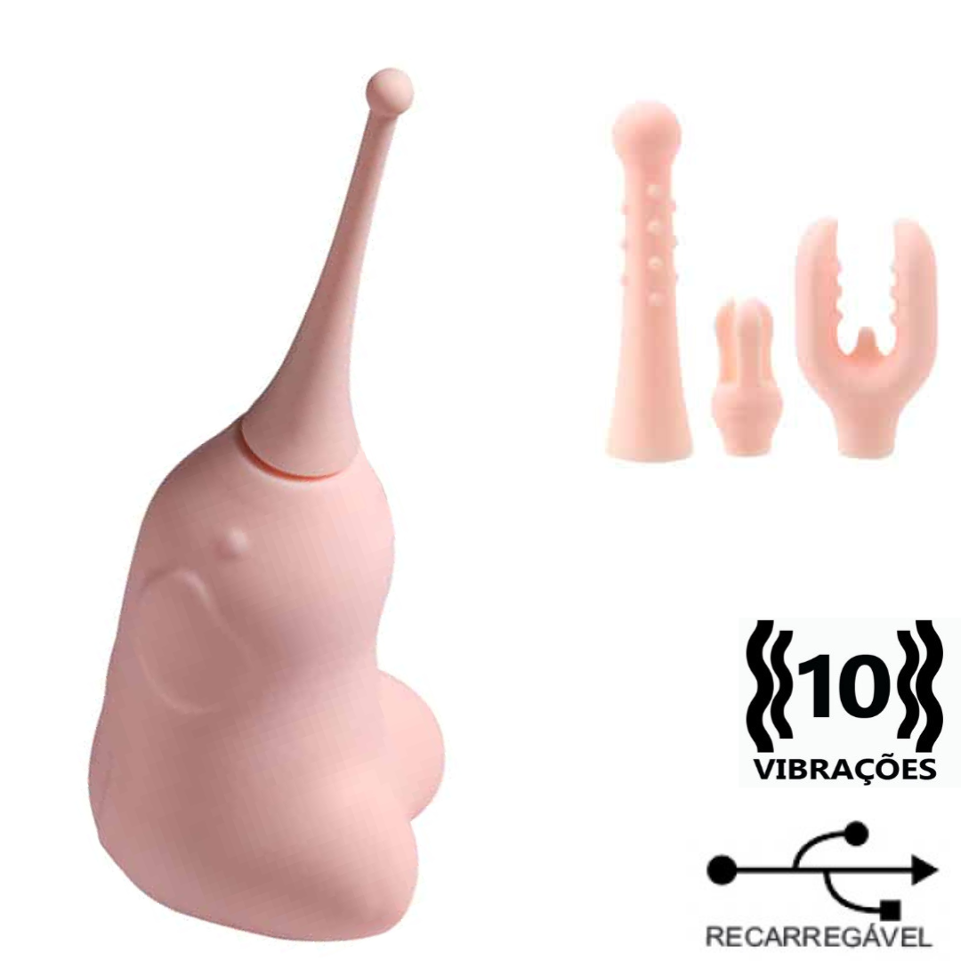 Vibrador Formato Elefante com 10 Modos de Vibração Recarregável