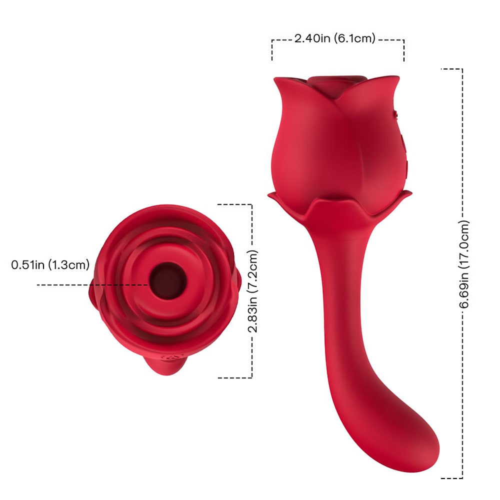 Vibrador de ponto G duplo com 9 modos de vibração e 10 modos de pulsação – Formato de Rosa. Feito em silicone de textura leve e macia. Com ponta levemente curvada, confortável para atingir o ponto G.Possui 9 modos de vibração e 9 modos de pulsação.Produto Recarregável, acompanha cabo USB.