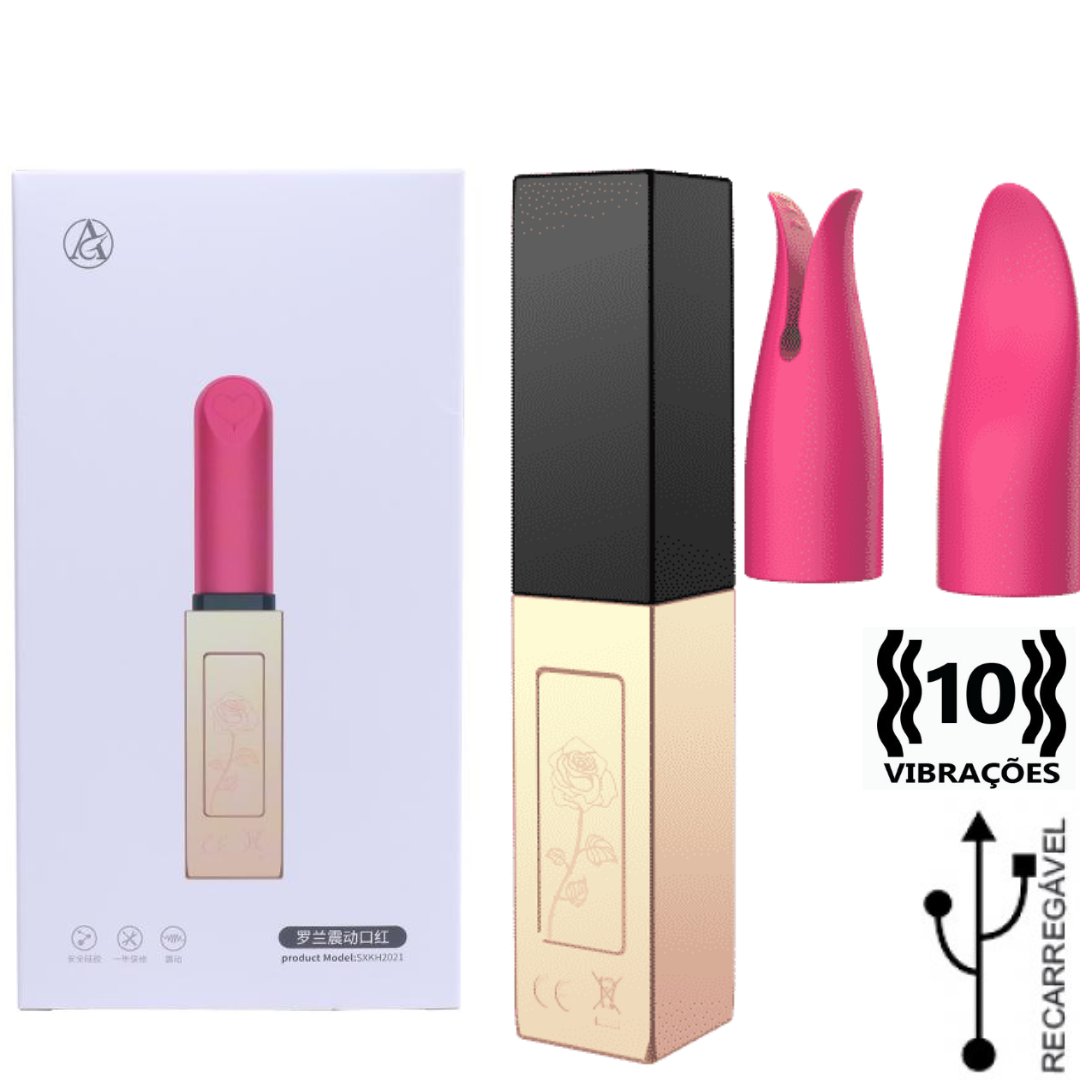 Vibrador Personal Recarregável Formato Batom com 10 Modos de Vibração