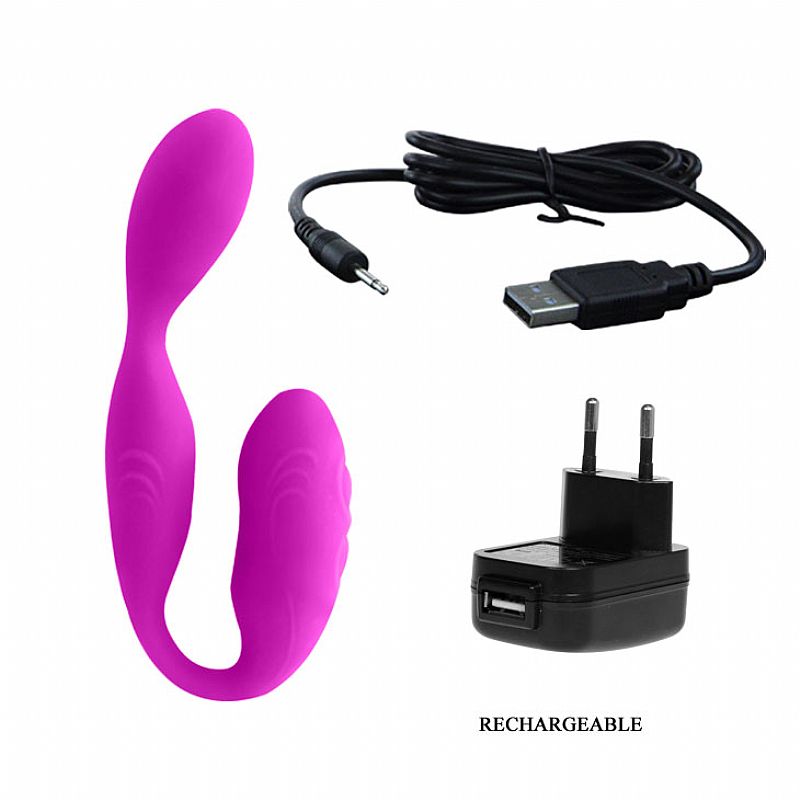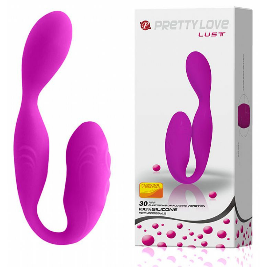 Vibrador Pretty Love Lust, é um vibrador de dupla estimulação, feito em silicone que confere um toque macio e de fácil higiene, em formato de U ele tem uma curvatura na parte penetrável para o estimula do ponto G, a parte externa estimula o clitóris, com essa dupla estimulação simultânea você terá muito mais prazer, possui 30 padrões de vibração.