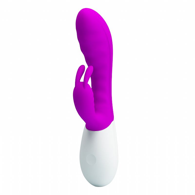 Vibrador ponto G, feito em silicone de fácil limpeza e toque agradável. Possui plug em formato de coelho em sua lateral, para estimulo do clitóris.
