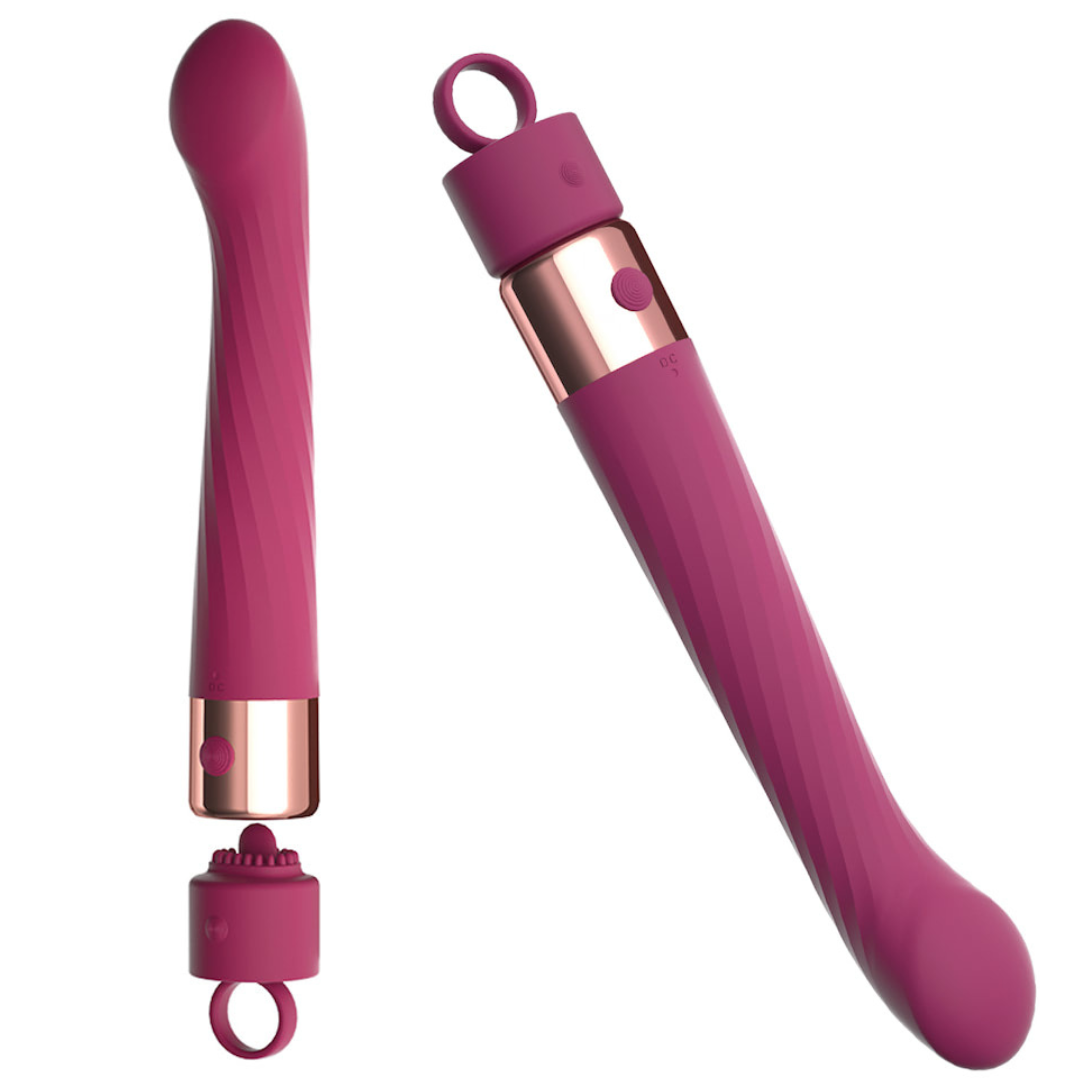Vibrador, kit 1+1. Acompanha estimulador, em formato de anel, com 20 modos de vibração e um vibrador de ponto G, com função de aquecimento e tem 10 modos de vibração, para ativar função de aquecimento, toque duas vezes rapidamente no botão.