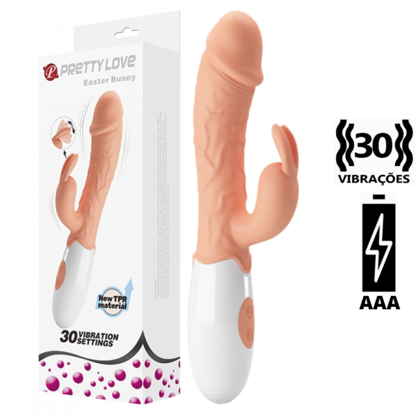 Vibrador com Detalhe de Glande e Estimulador Clitoriano Formato Coelho e 30 Modos de Vibração – PRETTY LOVE EASTER BUNNY