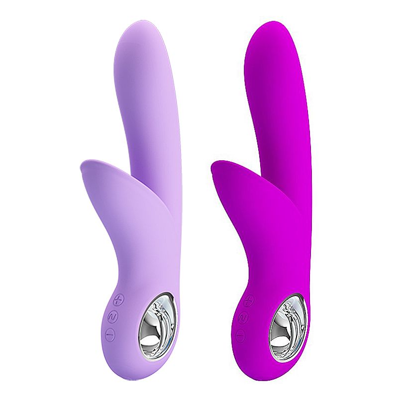 Vibrador recarregável com estimulador clitoriano, possui 7 modos de pulsação combinado com 5 modos de vibração.