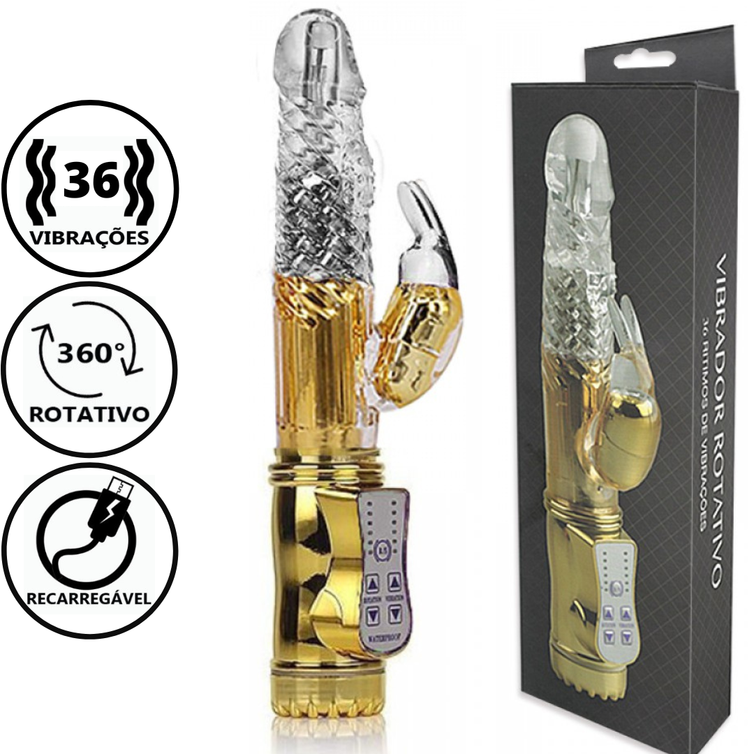 Vibrador rotativo recarregável com texturas em seu relevo para maior estimulação. Possui 36 funções de vibração, controle reverso de rotação, estimulador clitoriano vibratório. Permite o controle absoluto, com luz que indica a vibração escolhida.