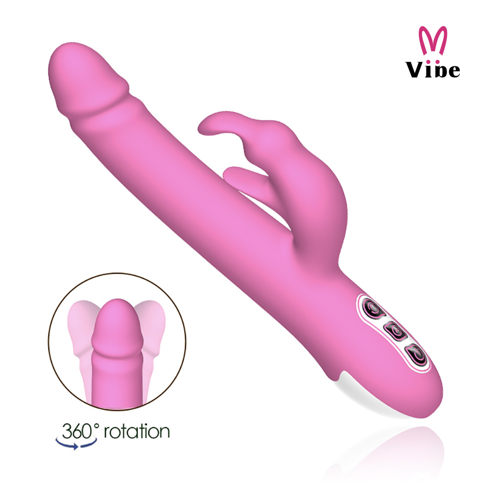 Vibrador Rotativo, com plug para estimulo de clitóris ambos funcionam simultaneamente durante a estimulação.