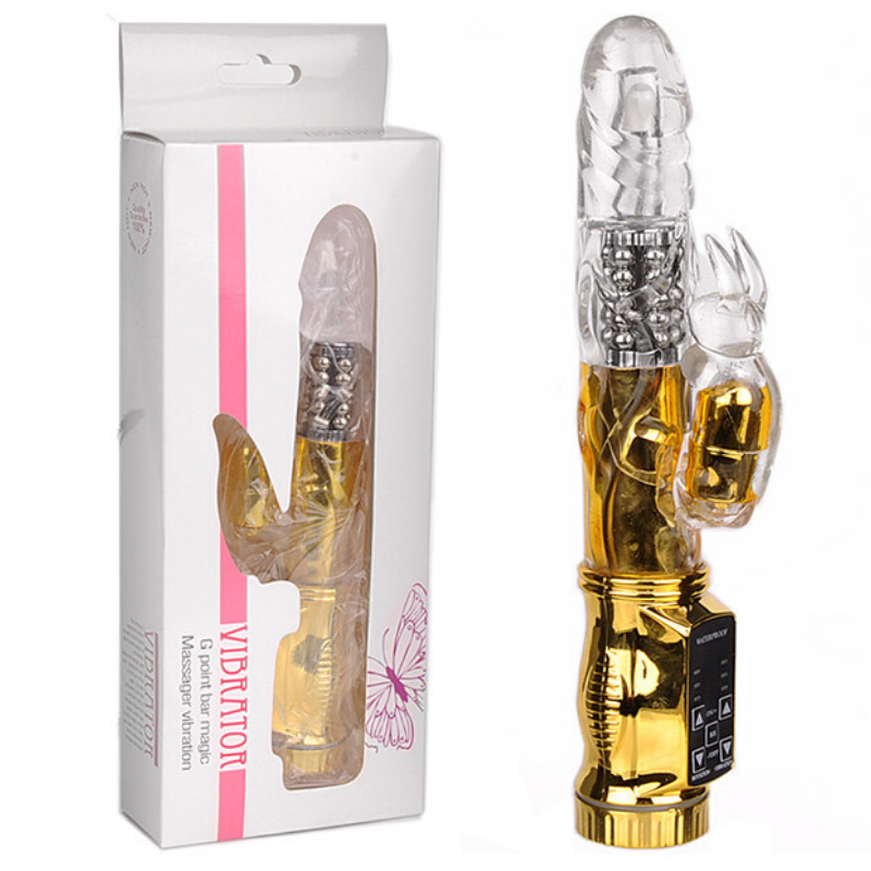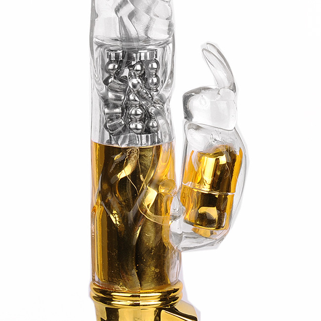 Lindo vibrador rotativo em jelly, macio e com pérolas internas para estimulação. Possui diversas rotações, com níveis variados. O estimulador de clitóris é em formato de coelho. As duas funções (rotação e estimulador de clitóris) podem ser acionadas juntas ou separadamente, controladas por botões na base do vibrador.
