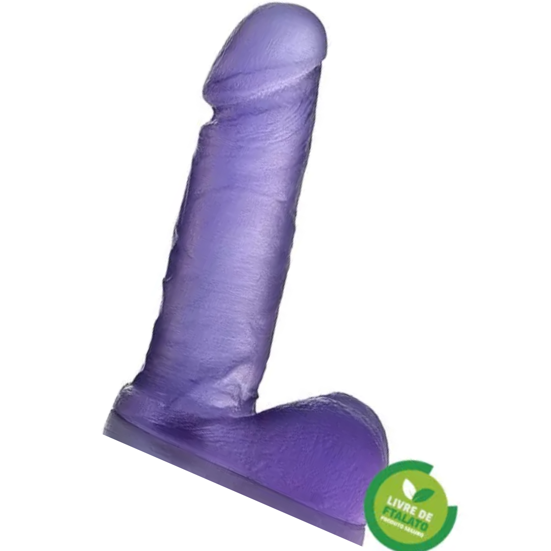Pênis Realístico Prótese com Escroto Gel Aroma Uva – 16,5×4 cm em gel – Sexshop